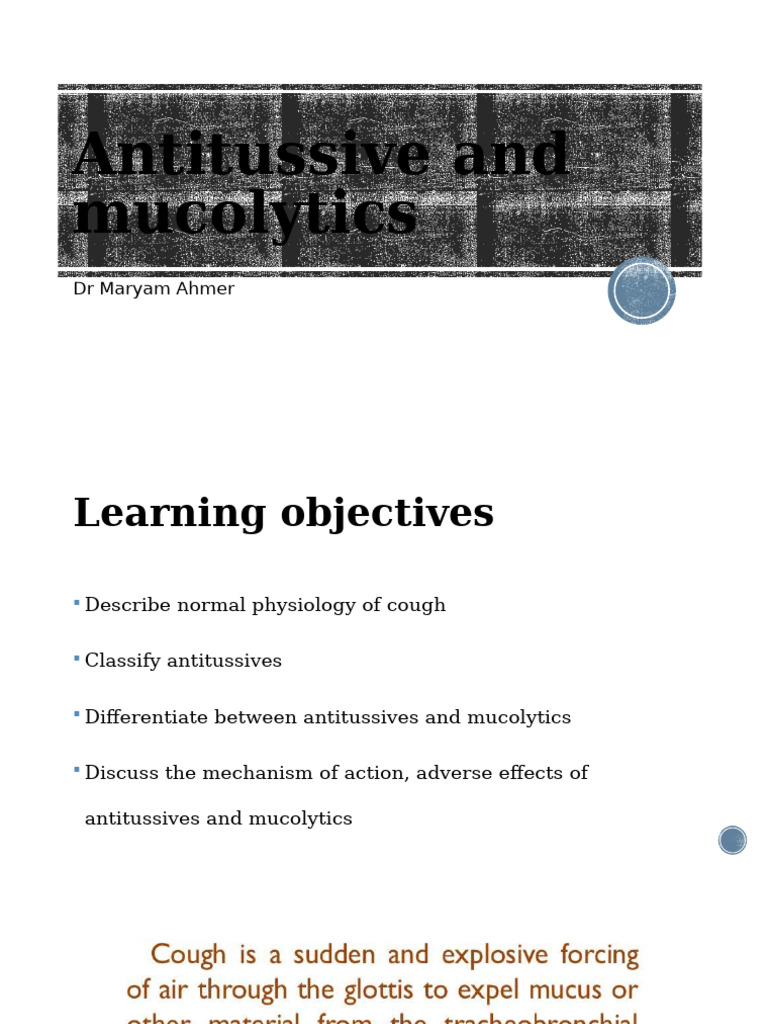 Mucolytics, Expectorants, Antitussives & Bronchodialators.pptx | Lung ...