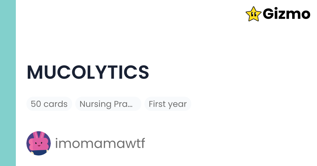 Mucolytics, Classification, MOA, Pk parameters, Therapeutic uses and ...