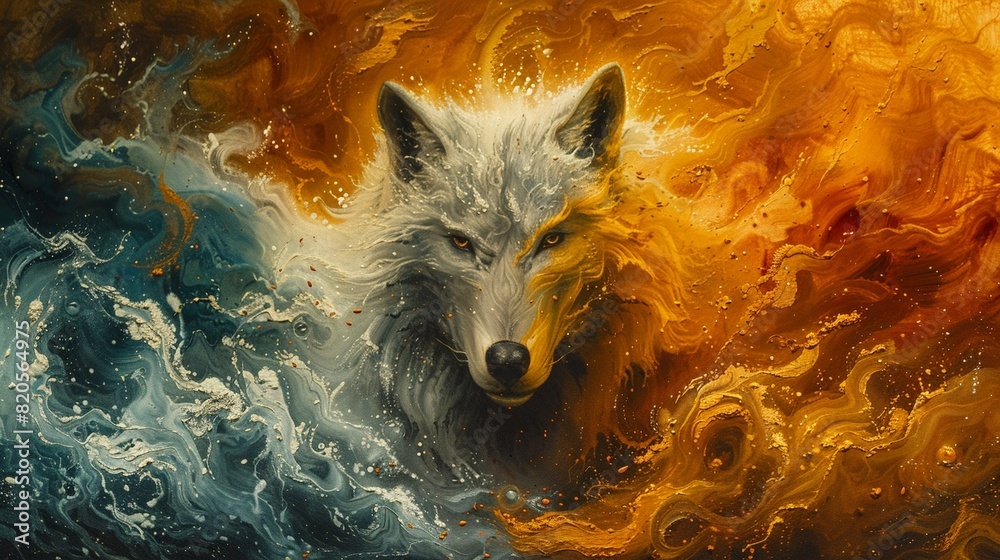 Mythical Fenrir, the wolf of legend, prowls with primal intensity along ...