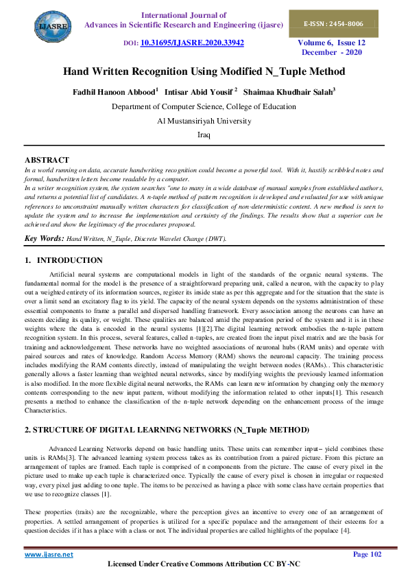 (PDF) Hand Written Recognition Using Modified N_Tuple Method