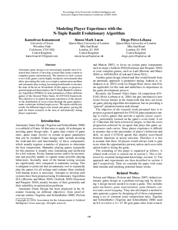 (PDF) Modeling Player Experience with the N-Tuple Bandit Evolutionary ...