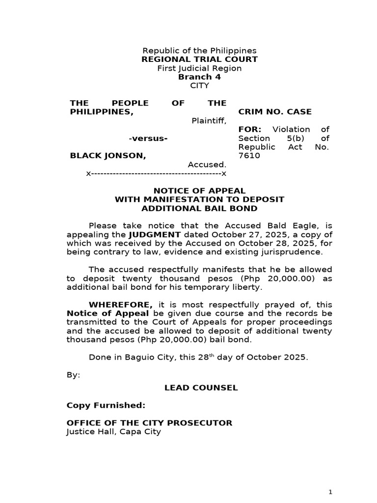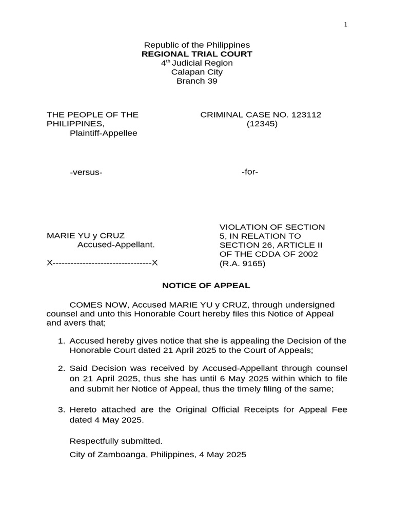 Notice of Appeal Sample | PDF | Appeal | Common Law