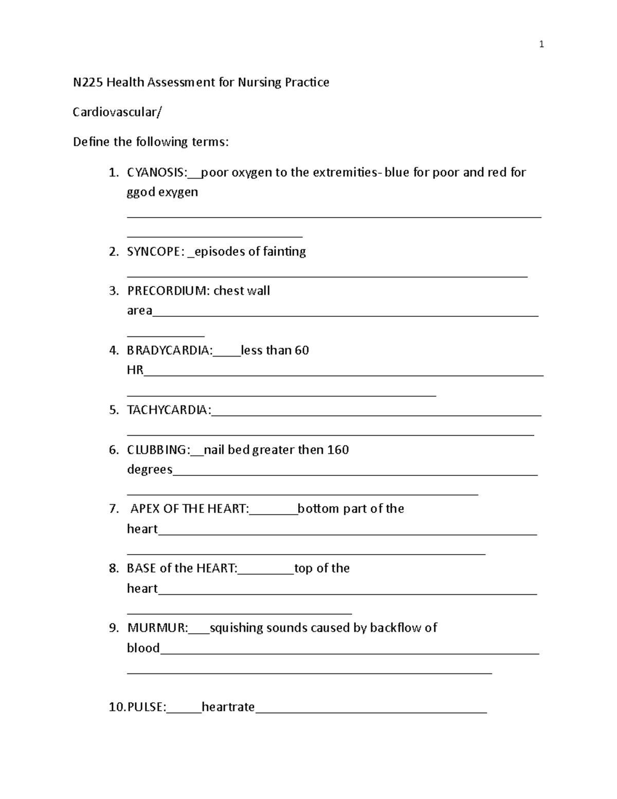 CV terms - practice - 1 N225 Health Assessment for Nursing Practice ...