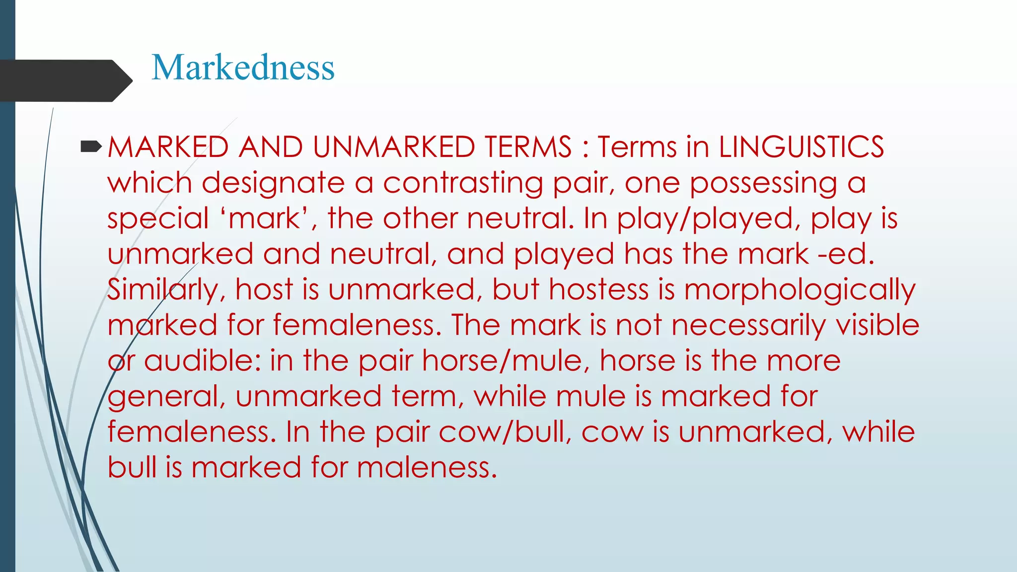 Markedness: Marked and Unmarked forms | PDF