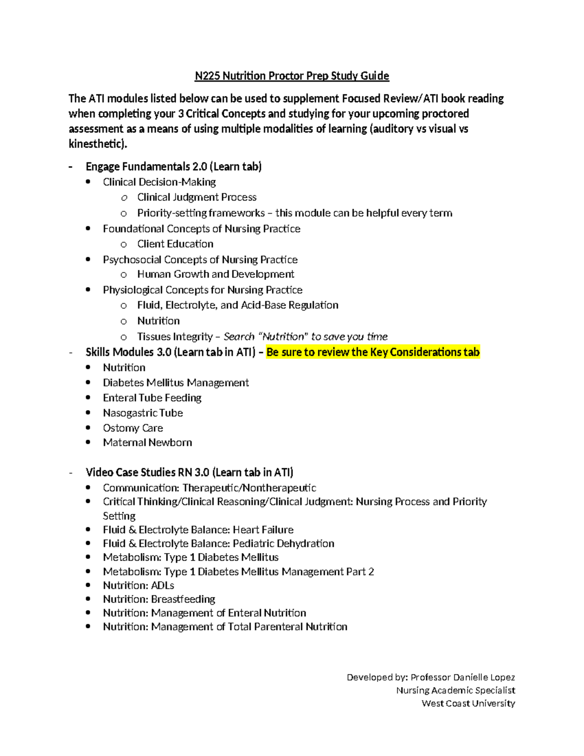 N225 Nutrition Proctor Prep Study Guide for Upcoming Assessment - Studocu