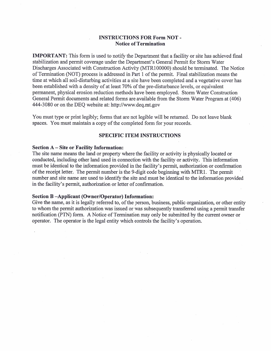 Download Instructions for Form NOT Notice of Termination PDF ...