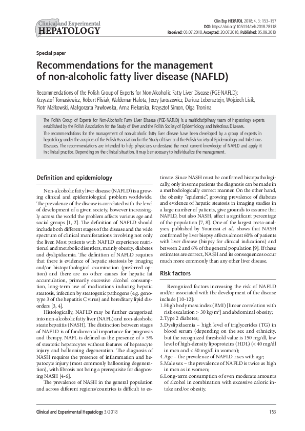 (PDF) Recommendations for the management of non-alcoholic fatty liver ...