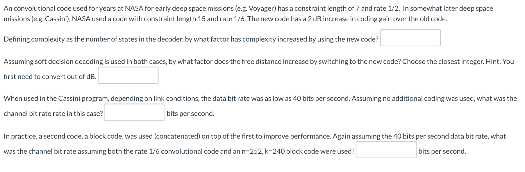 Solved An convolutional code used for years at NASA for | Chegg.com