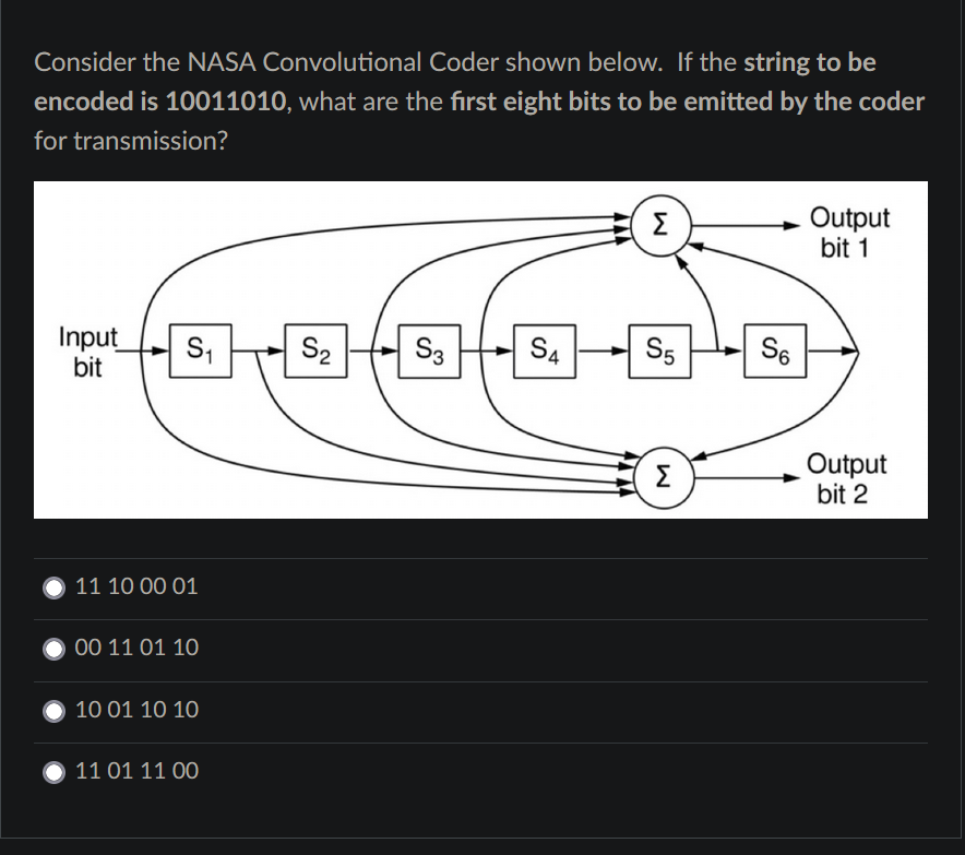 Solved Consider the NASA Convolutional Coder shown below. If | Chegg.com