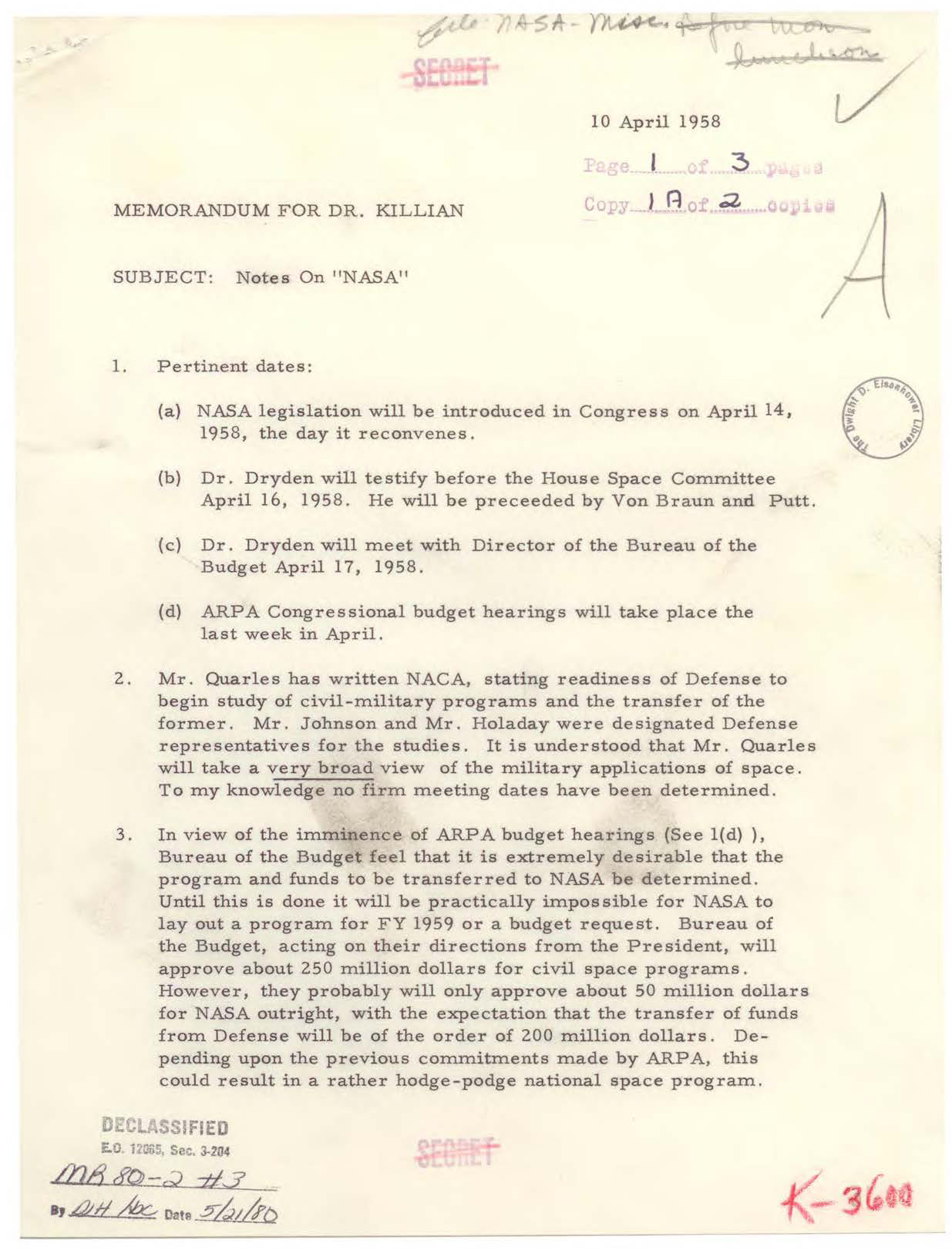 ORIGINAL NASA MEMORANDUM: DATED 1967/1969: PHOTOS: GOOD | #4632708247