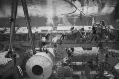 NASA astronaut training in a pool of water preparing to go to the Moon