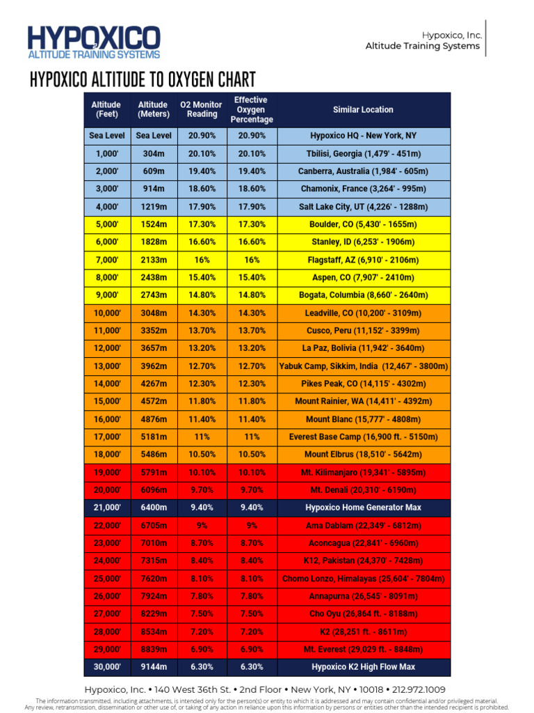 Hypoxico Altitude To Oxygen Chart | PDF | Height
