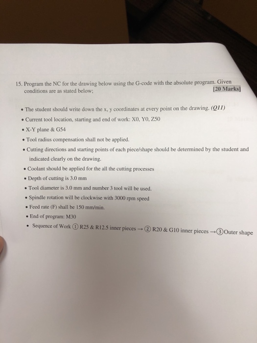 Solved 15. Program the NC for the drawing below using the | Chegg.com