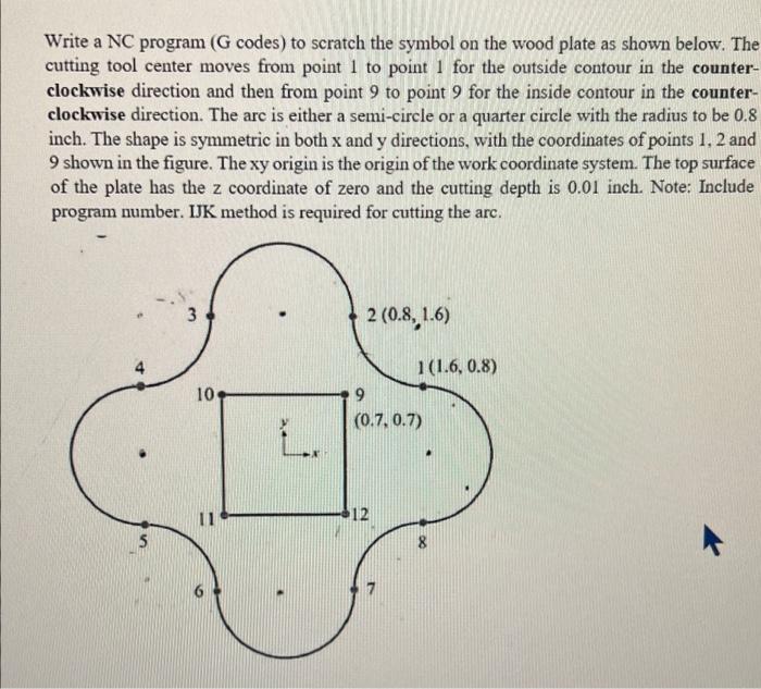 Solved Write a NC program (G codes) to scratch the symbol on | Chegg.com