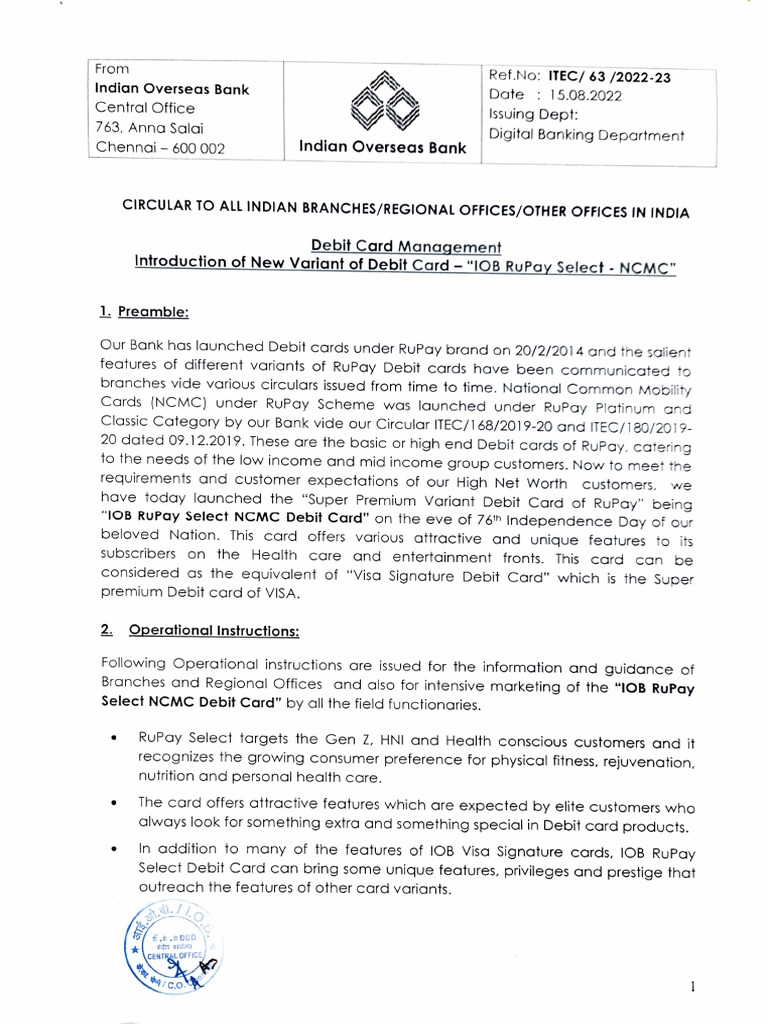 Rupay Select NCMC Circular | PDF | Service Industries | Payments