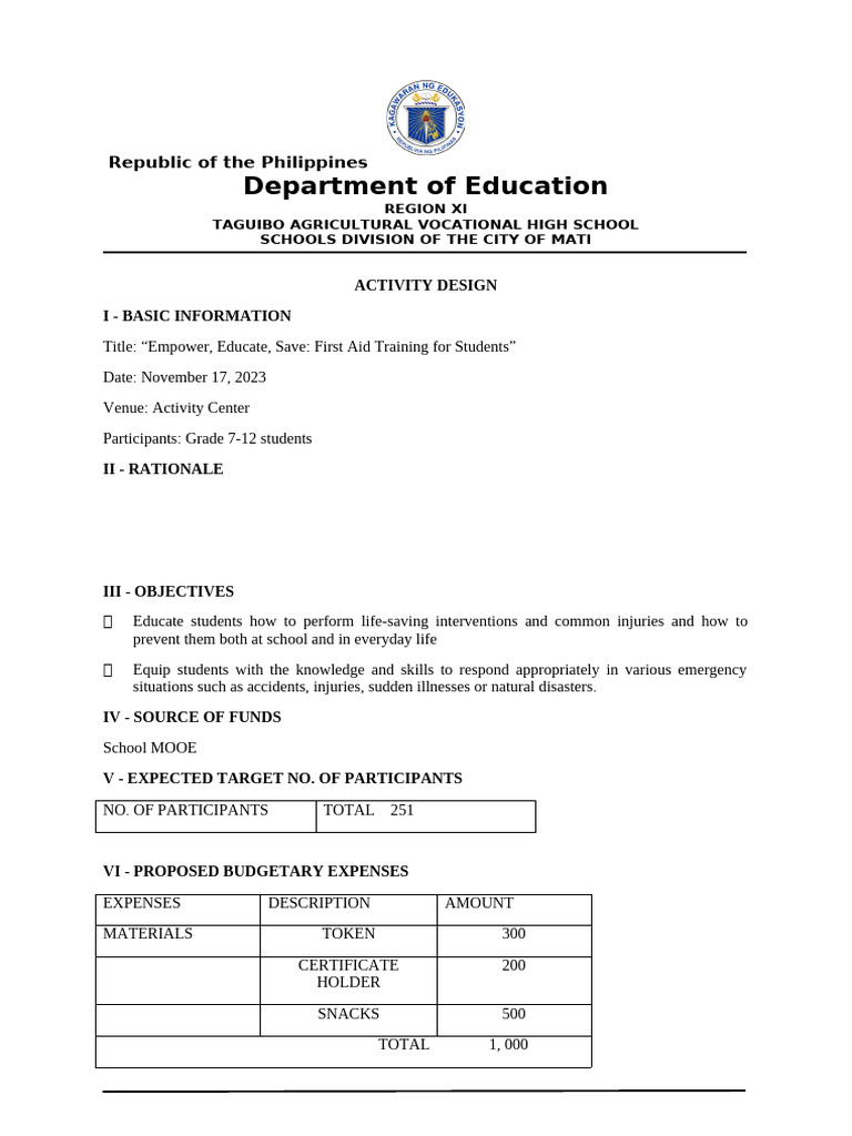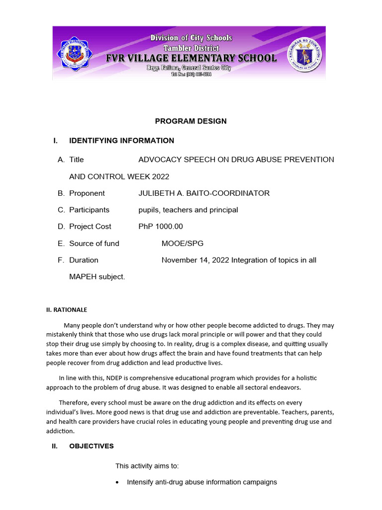 ACTIVITY DESIGN Ndep | PDF | Substance Abuse | Health Sciences