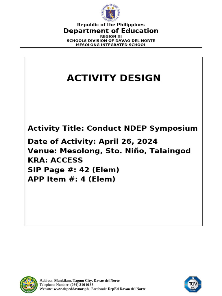 NDEP Action Plan 2024-2025 for San Roque Elementary School - Studocu