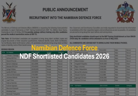 NDF Shortlisted Candidates List 2026 Recruits Officer Cadets Namibian ...