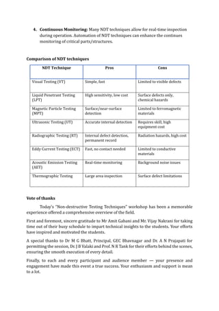 Non destructive testing techniques wokshop | PDF