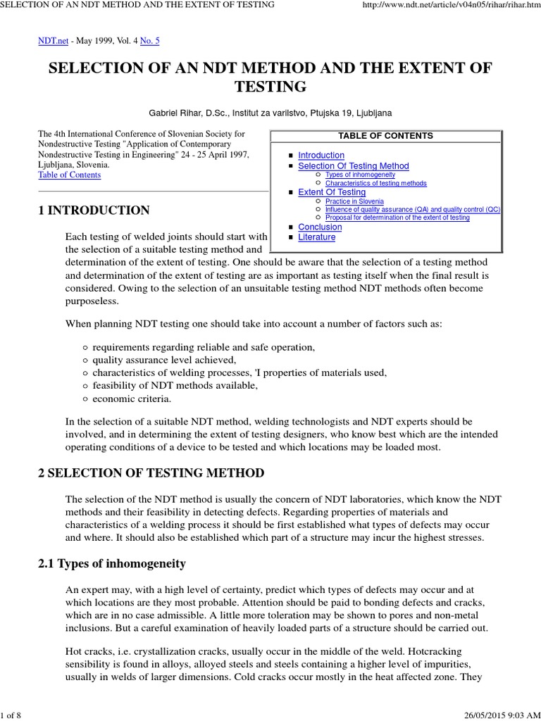 Selection of An NDT Method and The Extent of Testing | PDF ...