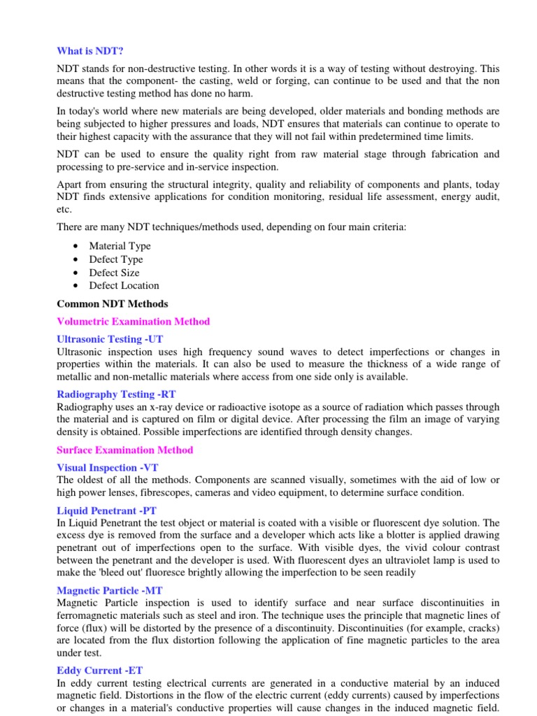 Introduction of Non-Destructive Testing (NDT) | PDF | Nondestructive ...