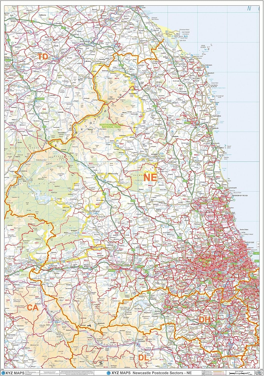 Newcastle - NE - Postcode Wall Map - Paper : Amazon.co.uk: Stationery ...