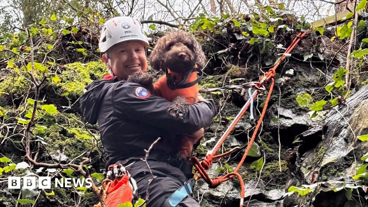 Cockapoo stuck in Caldbeck freed by mountain rescue service - BBC News