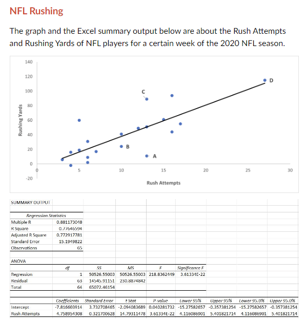 NFL Rushing The graph and the Excel summary output | Chegg.com