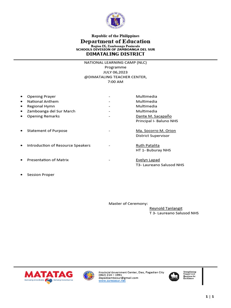 NLC Program & Invitation Kick-Off - National Learning Camp Kick-Off ...