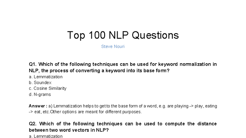 100 NLP Questions - Comprehensive Guide for NLP Techniques and Concepts ...