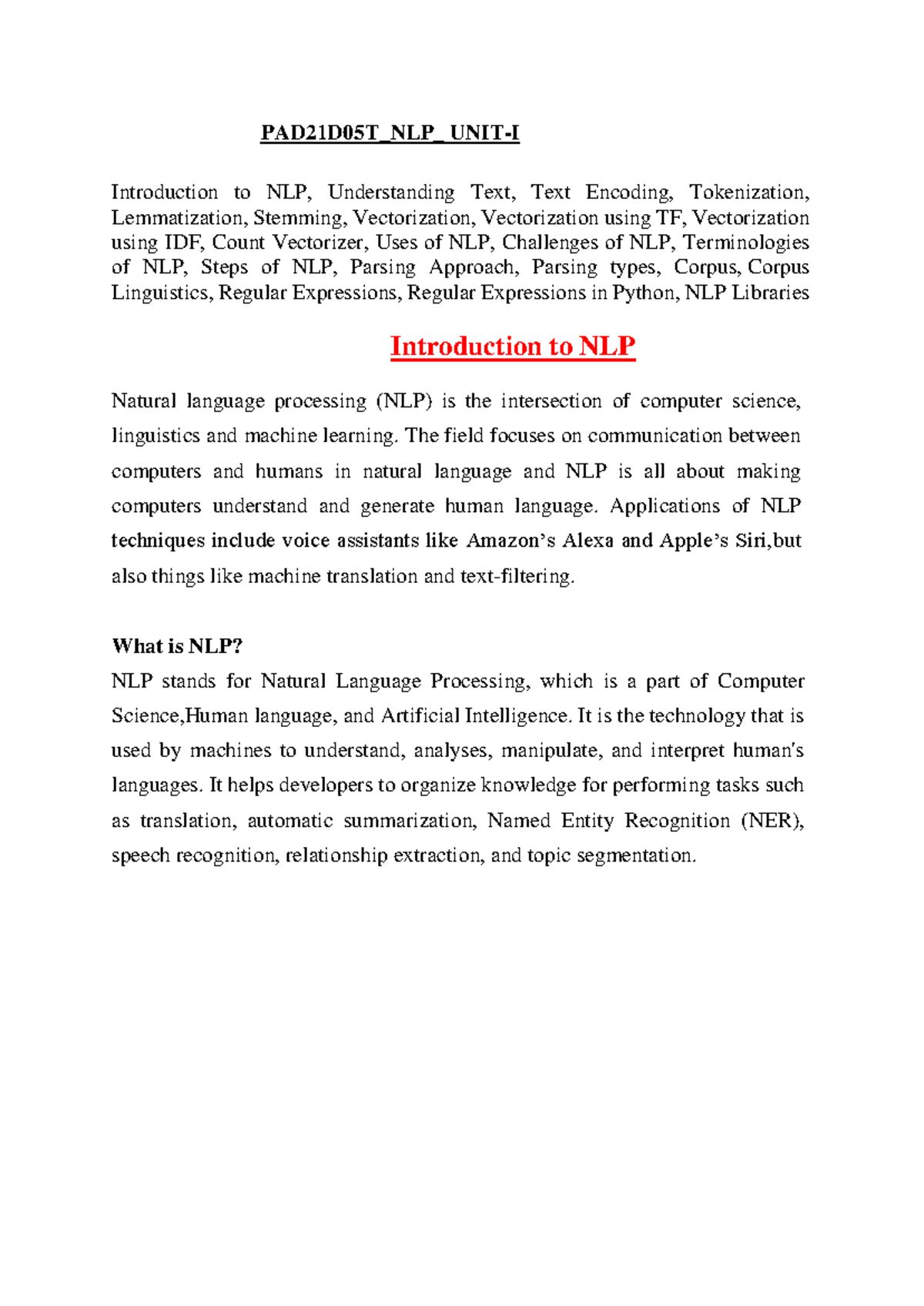 AL3501 - NLP Practical Exercises: A Comprehensive Syllabus Guide - Studocu