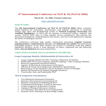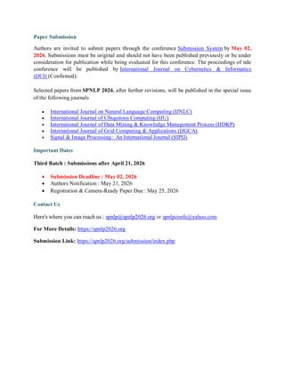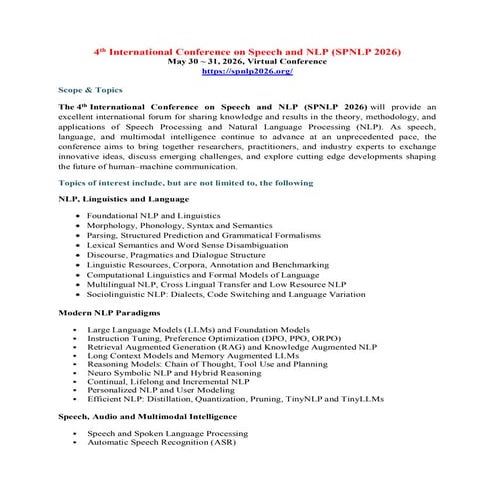 4th International Conference on Speech and NLP (SPNLP 2026) | PDF