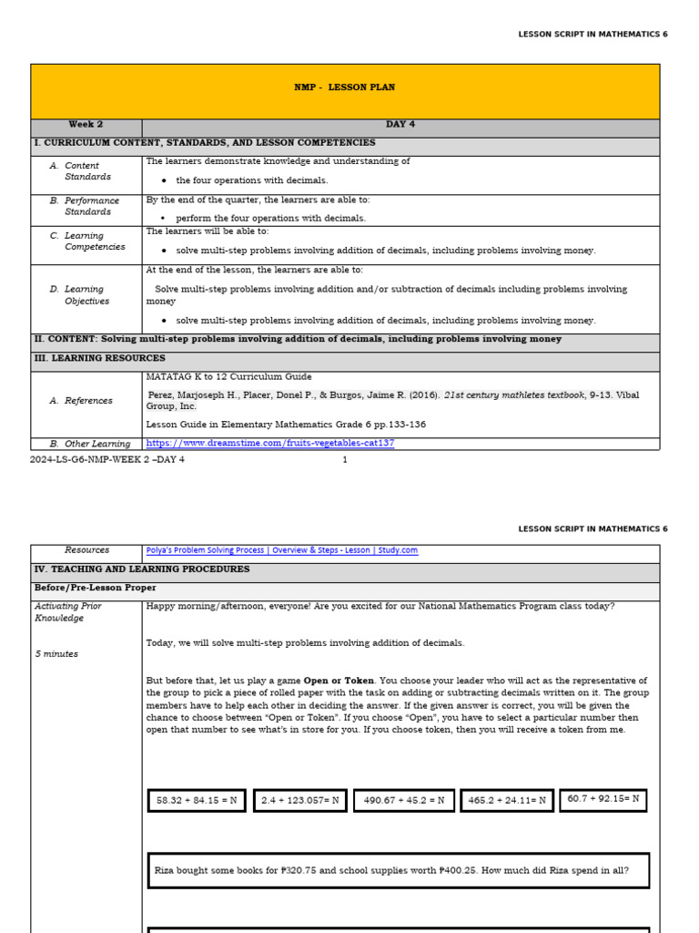 Grade 6 National Mathematics Program (NMP) Lesson Scripts (Q1: Week 5 ...