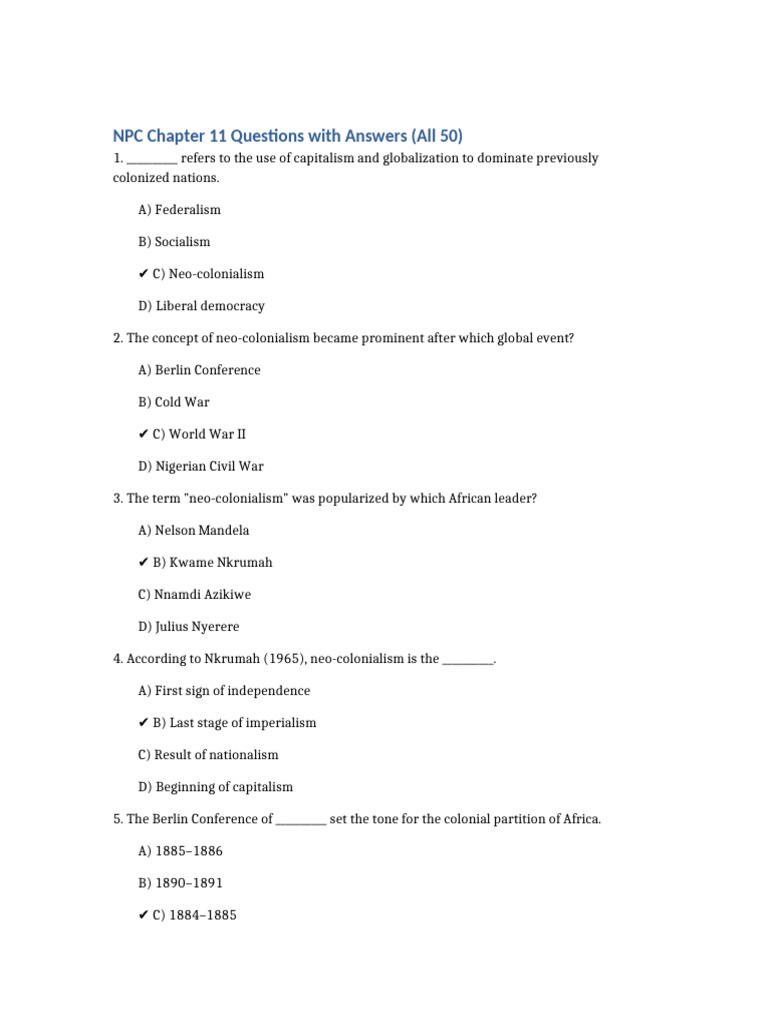 NPC Chapter 11 All Questions Answered | PDF | Nigeria | Pan Africanism