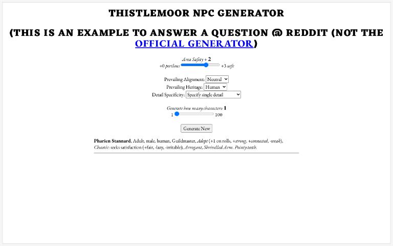 Thistlemoor NPC generator (THIS IS AN EXAMPLE TO ANSWER A QUESTION ...