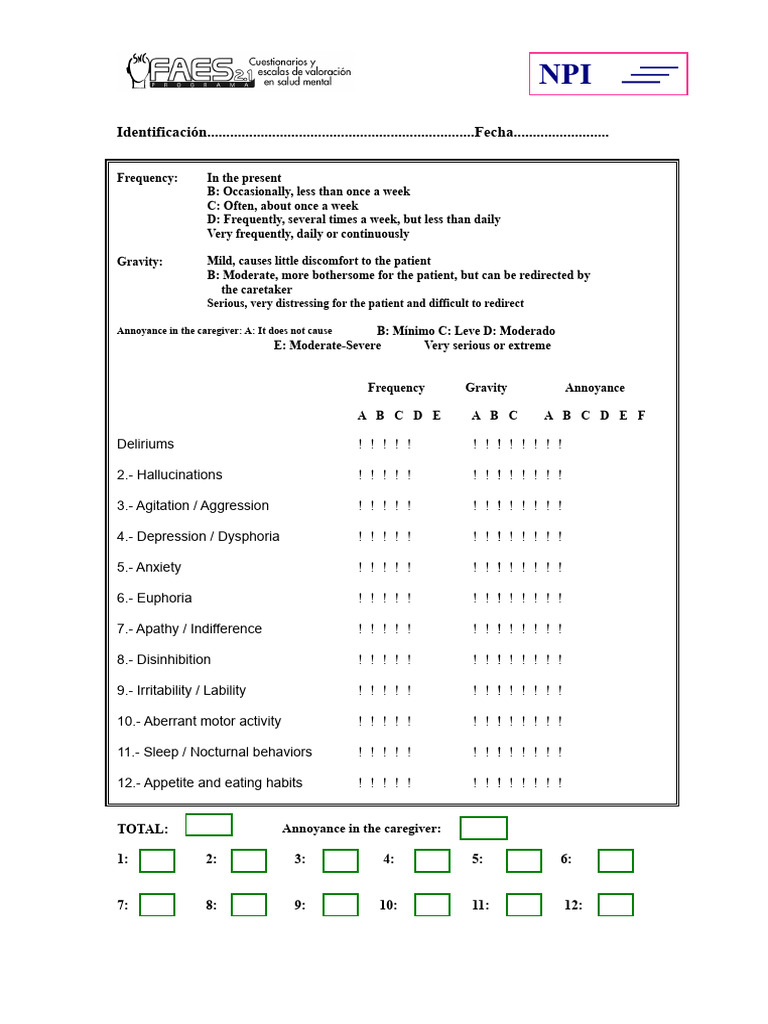 NPI Neuropsychiatric Inventory | PDF | Caregiver | Human Diseases And ...