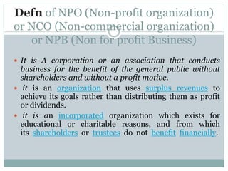 Non-Trading Organisation or NPO | PPTX | Non-Profit Organizations ...