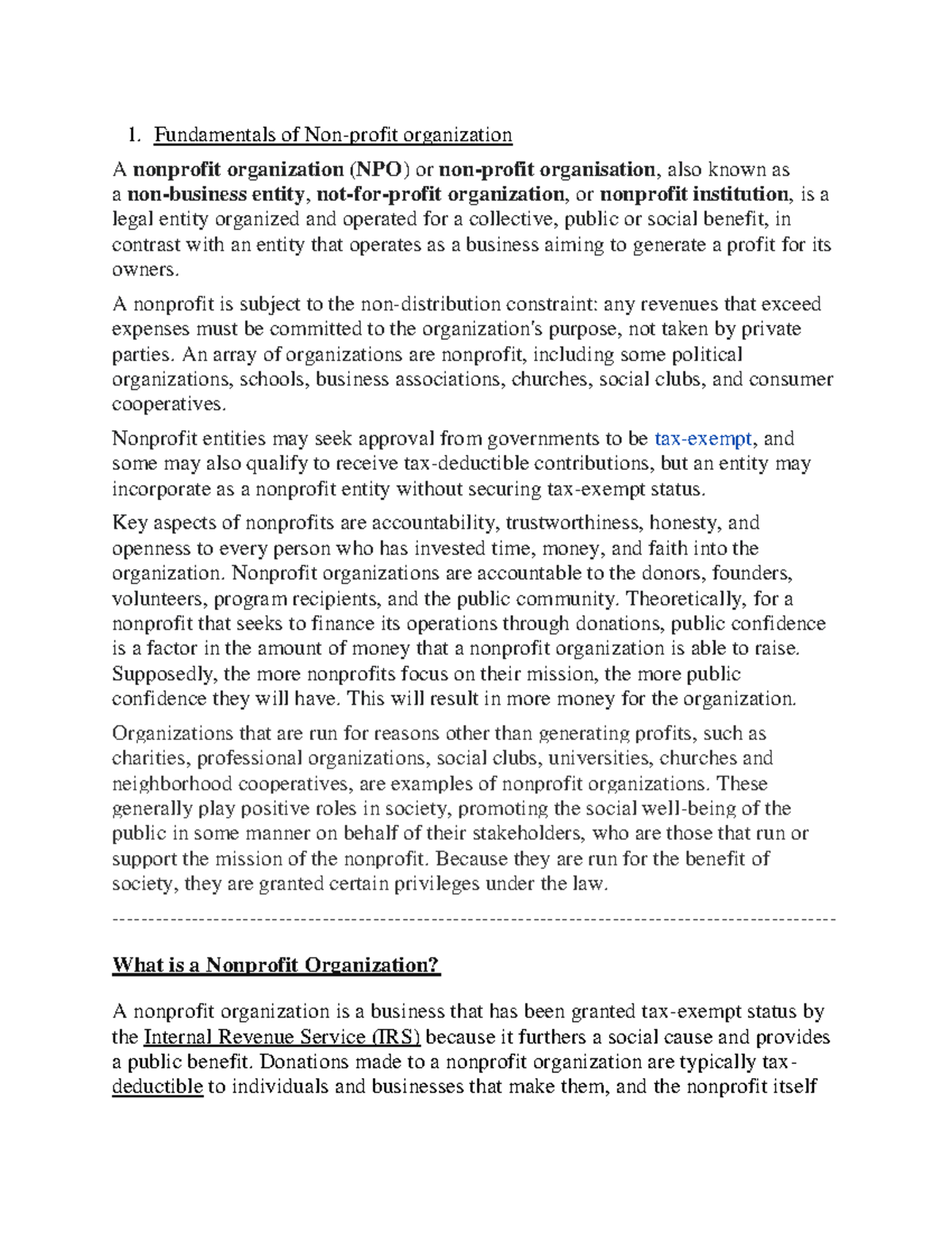 Handout 1 - Nonprofit Organizations revised.docx - Google Docs ...