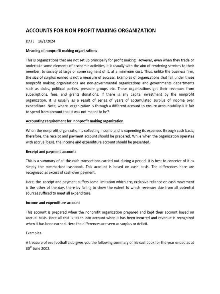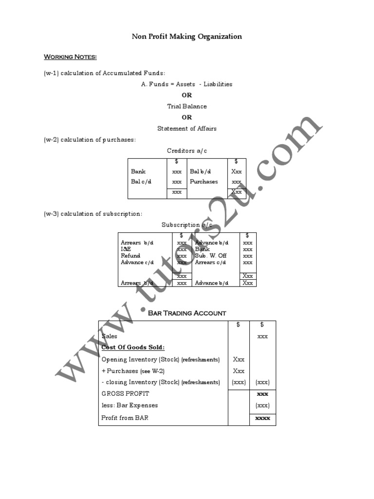 Non Profit Making Organization: Working Notes | PDF | Finance & Money ...