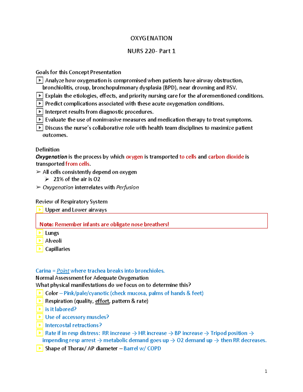 O2 1st-1 - oxygenation - OXYGENATION NURS 220- Part 1 Goals for this ...