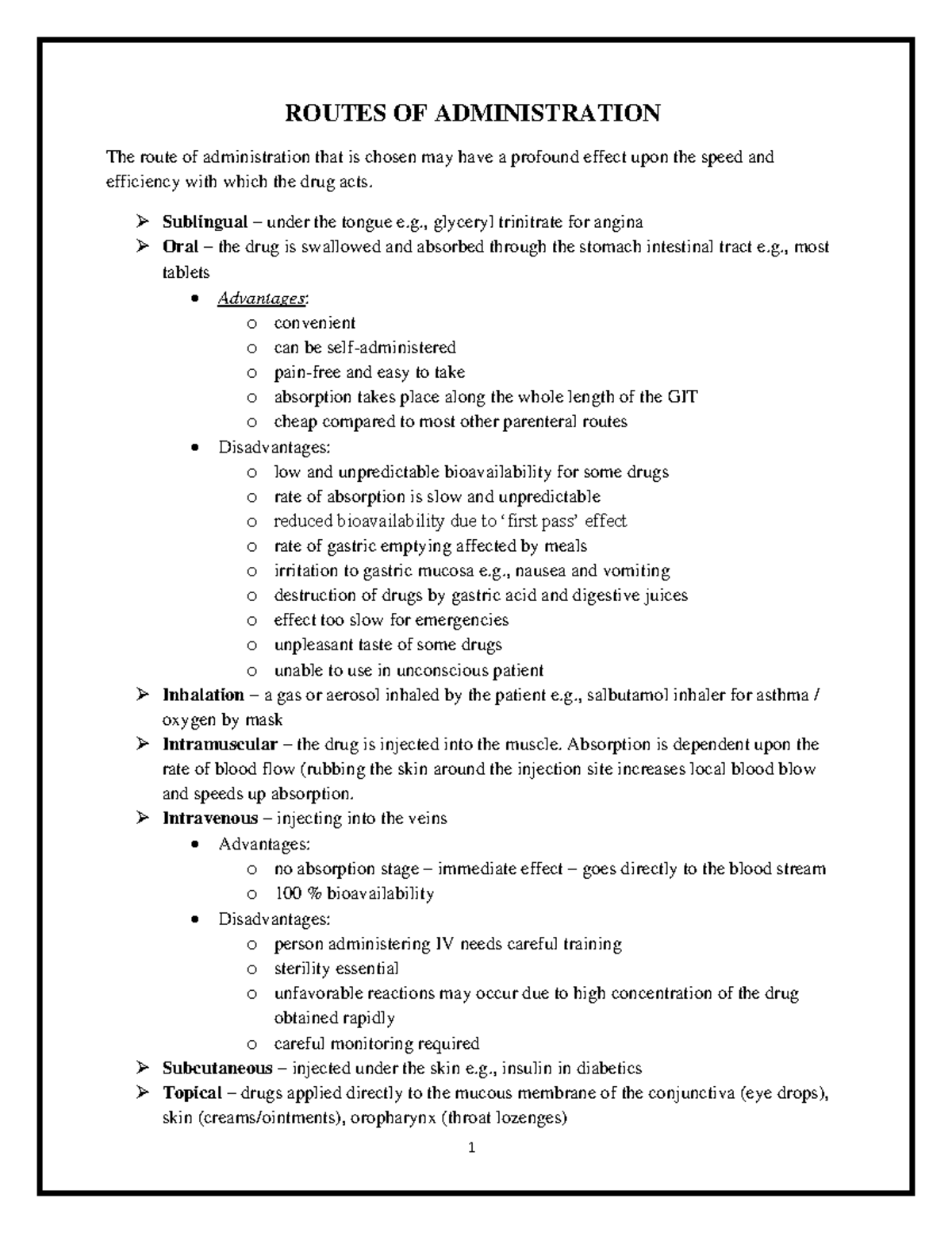 Routes of Administration and NSAIDs: Key Notes and Insights - Studocu