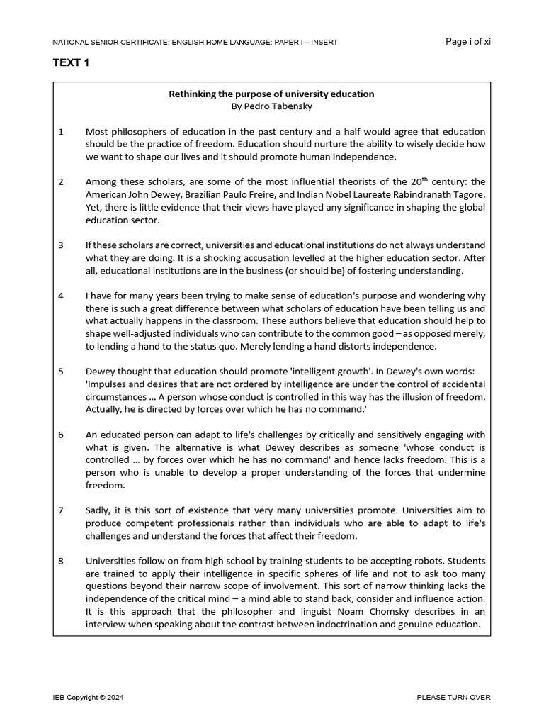 NSC English HL P1 Insert 2024 | PDF | Learning