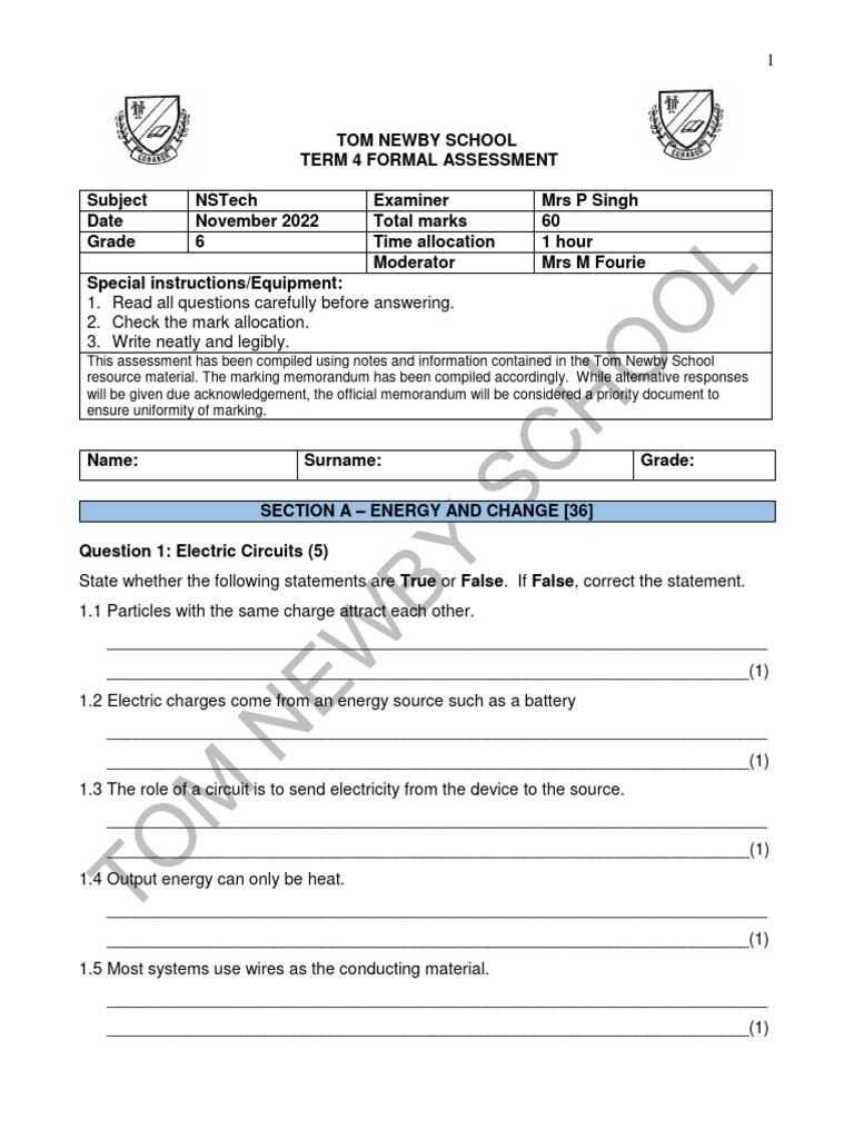Nstech Gr. 5 Term 3 Formal Test2 | PDF | Mains Electricity | Ac Power ...
