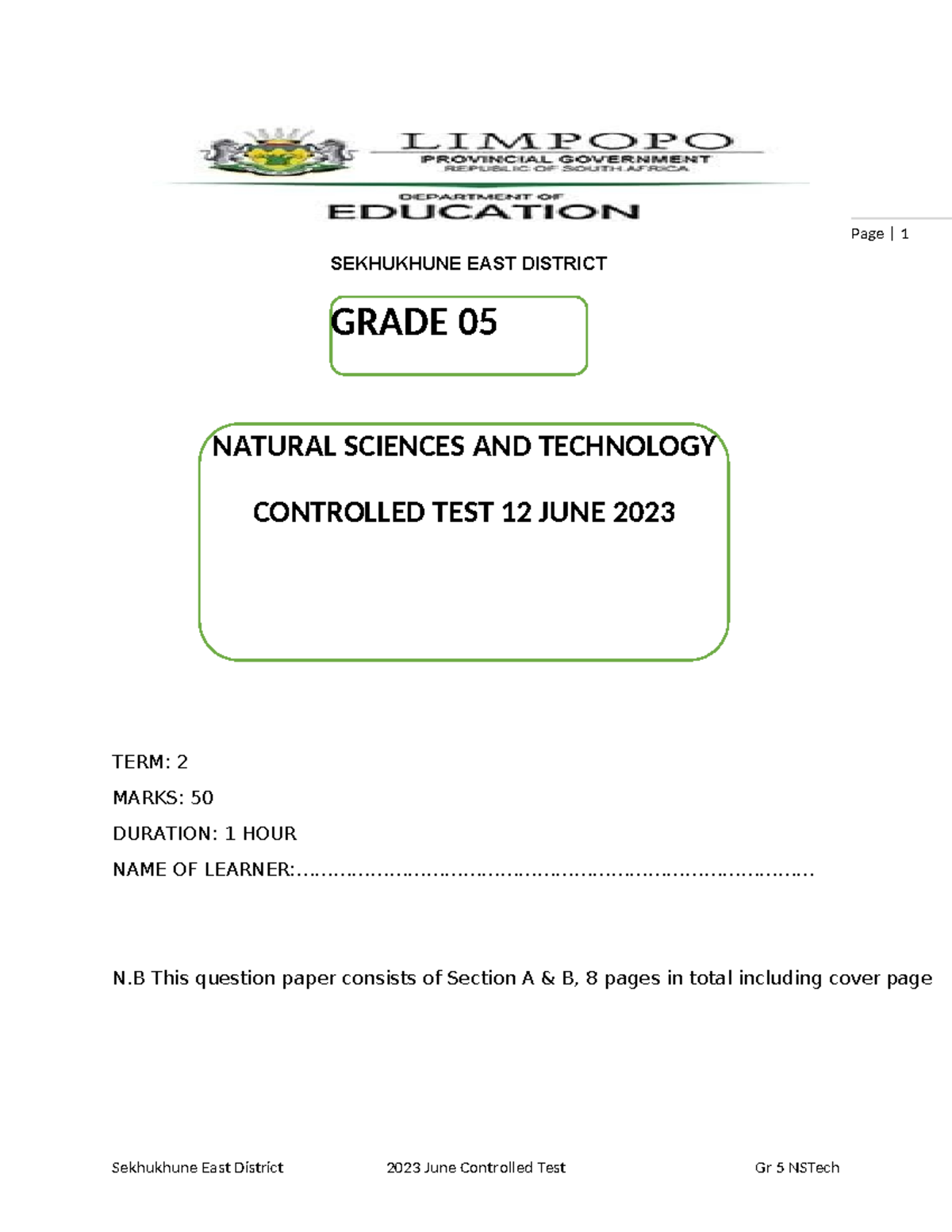 Grade 5 NSTech Term 2 Controlled Test - June 2023 Overview - Studocu
