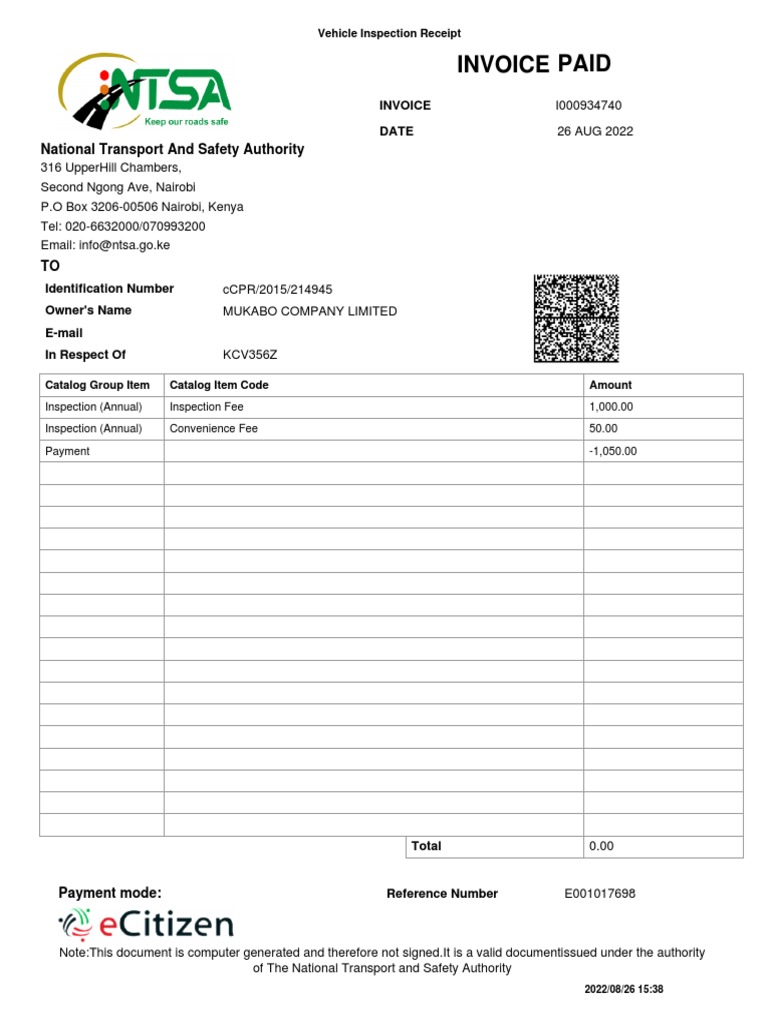 Invoice Paid: National Transport and Safety Authority | PDF