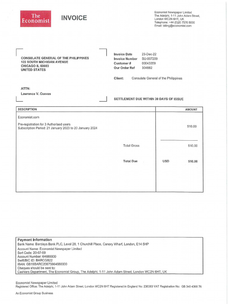 Invoice - The Economist | PDF