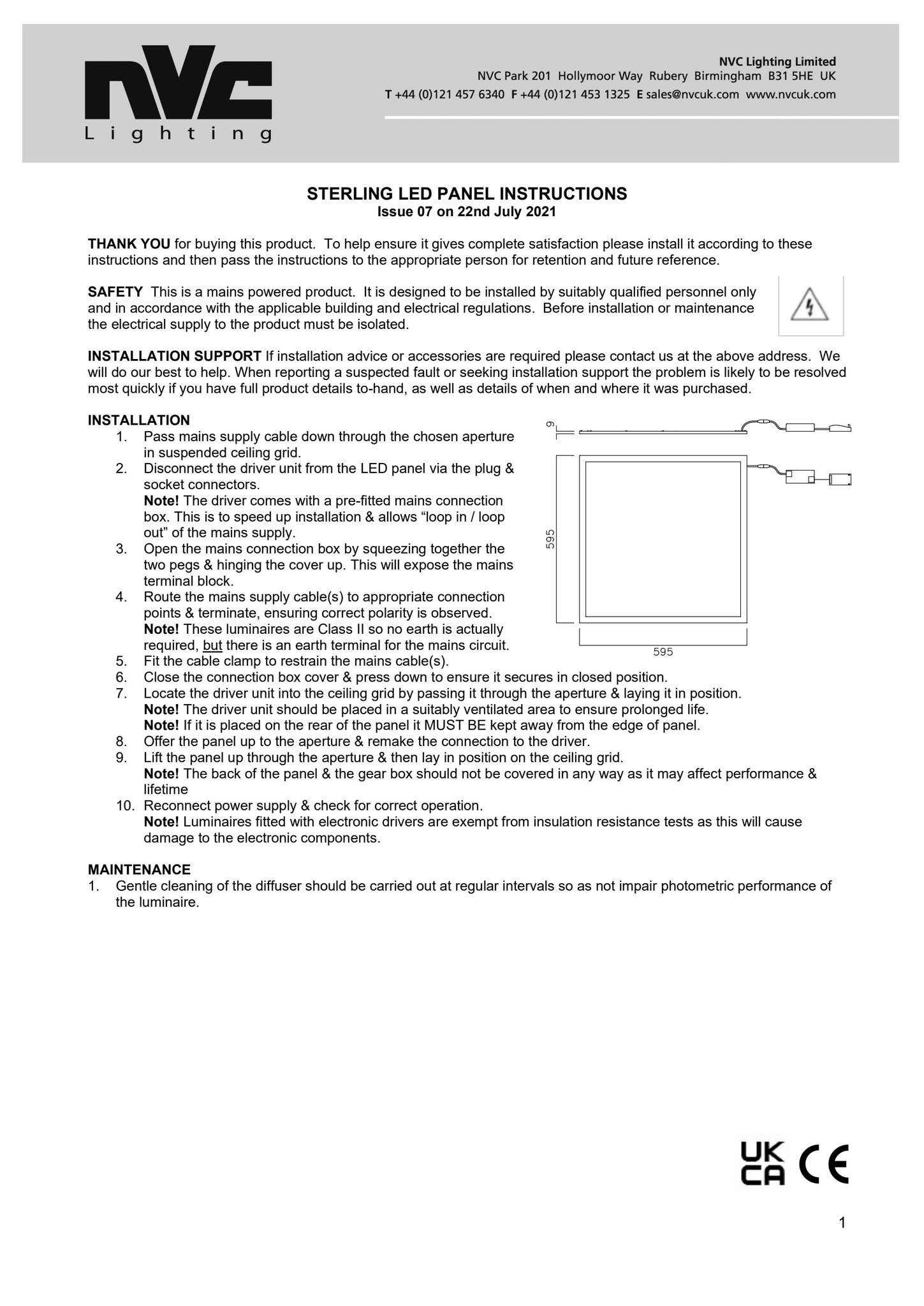 STERLING LED PANEL - Instruction Sheet by NVC Lighting UK - Issuu