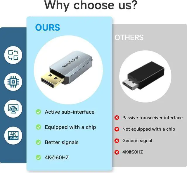 SWITCHFLUX Active DisplayPort to HDMI Adapter (4K@60Hz,1440P/2K@120Hz ...