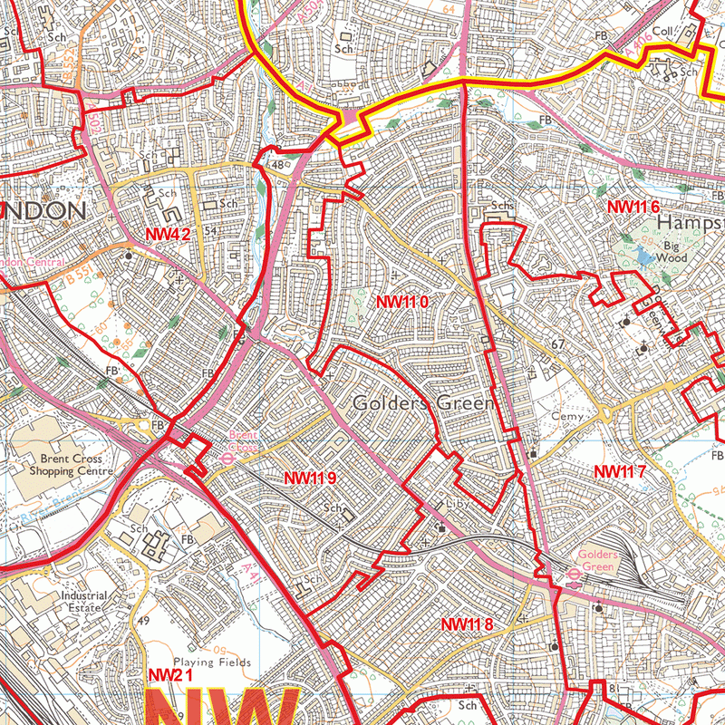 North West London - NW - Postcode Wall Map | Stanfords