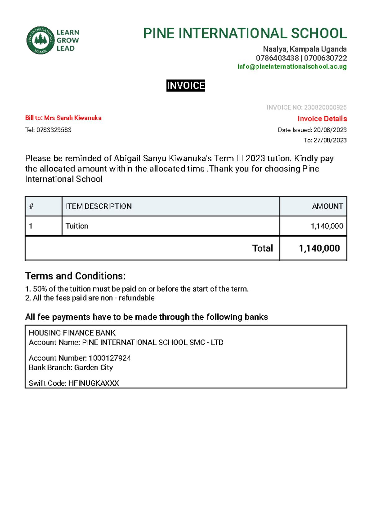 Abigail Sanyu Kiwanuka Invoice - PINE INTERNATIONAL SCHOOL Naalya ...